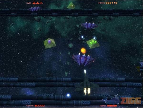 Para facilitar o seu trajeto, colete os itens disponíveis pelo caminho para obter novos tipos de armas e aumente seu poder de fogo. Para pegar os itens é só passar por cima deles. Se você encostar nos obstáculos, ou nas outras naves que existem pelo meio do caminho perderá uma vida. Ao todo você possui três vidas, por isso seja ágil e use seus reflexos para se desviar.