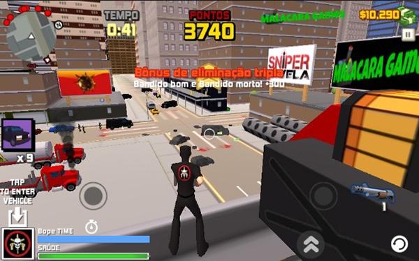 Desenvolvido pelo estúdio brasileiro Malacara Games, o game está disponível gratuitamente no Google Play para Android. O jogo traz gráficos em 3D, um cenário em mundo aberto com missões, armas e veículos para se divertir! Confira o trailer:
