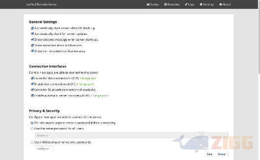 As funções encontradas dão a você a possibilidade de fazer pequenas alterações no controle remoto ao selecionar a opção “manager”. Aqui é possível ter acesso a diversas abas no seu navegador que configurarão sua experiência com acesso remoto. A opção “remotes” é interessante e, clicando nela, você poderá selecionar quais aplicações podem ser ativadas ou desativadas no seu aplicativo. É possível acessar um log do programa e chegar a segurança do serviço.