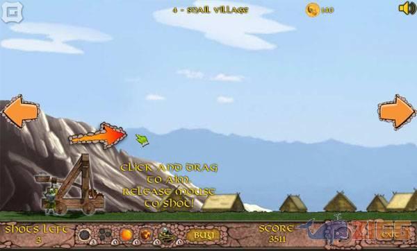 À medida que passa de fase poderá comprar novos itens que destruírão seus inimigos vikings no mesmo instante. Para manipular a catapulta basta clicar com o mouse sobre ela até atingir o ponto de impulso que deseja, indique a direção da seta segurando o botão direito do mouse e movimentando-o.