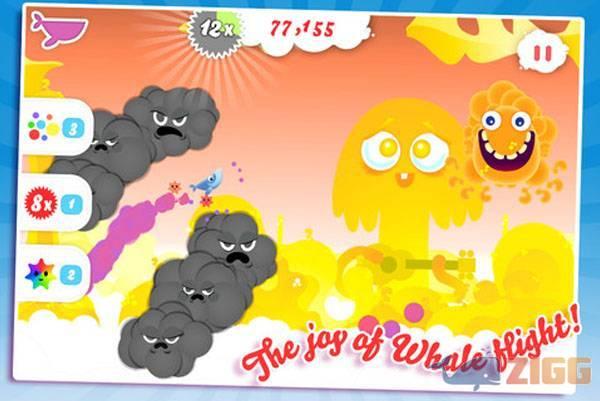 Leve esta baleia no caminho de bolhas coloridas evitando as nuvens carregadas.