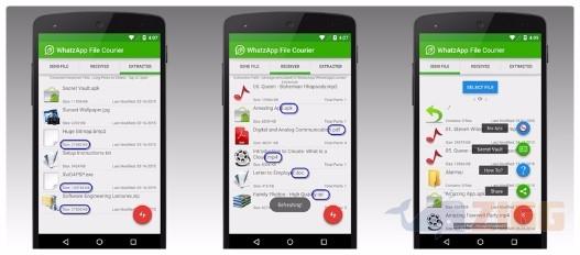 O outro usuário, que também deve possui o WhatsApp File Sender, irá decodificar o arquivo recebido e, uma vez descompactado, receberá na íntegra os documentos compartilhados. Note que os arquivos multimídia do WhatsApp só podem possuir até 16mb, mas o WPS irá particionar, ou dividir, seu documento, e remontá-lo no celular destinatário automaticamente.