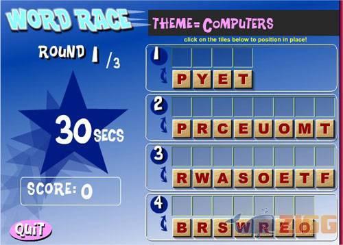WordRace é um jogo divertido e didático de soletração. Letras aleatórias surgem na tela e seu trabalho é uní-las formando palavras eliminando-as da tela antes que o tabuleiro fique lotado. Para quem não possui muita habilidade com o teclado, o jogo permite que as letras sejam selecionadas com um clique do mouse ou com ambos. O game é interessante e estimula o jogador a melhorar seu raciocínio na hora de rearranjar as letras para formar as palavras.