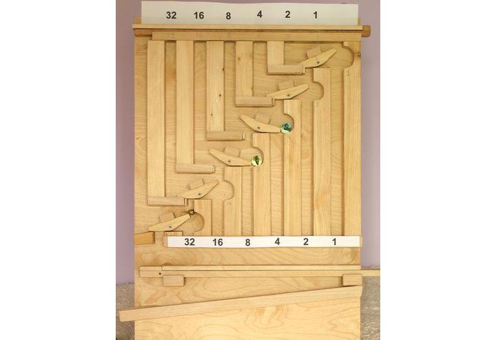 Máquina de somar que usa a mecânica binária e bolas de gude