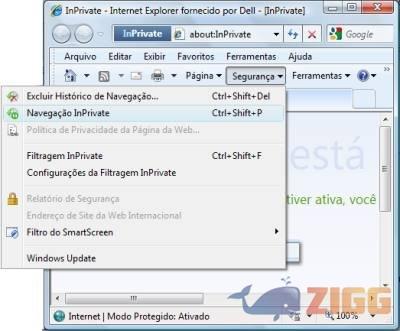 Recurso InPrivate do browser não armazena cookies, histórico, temporários e outros dados da navegação.