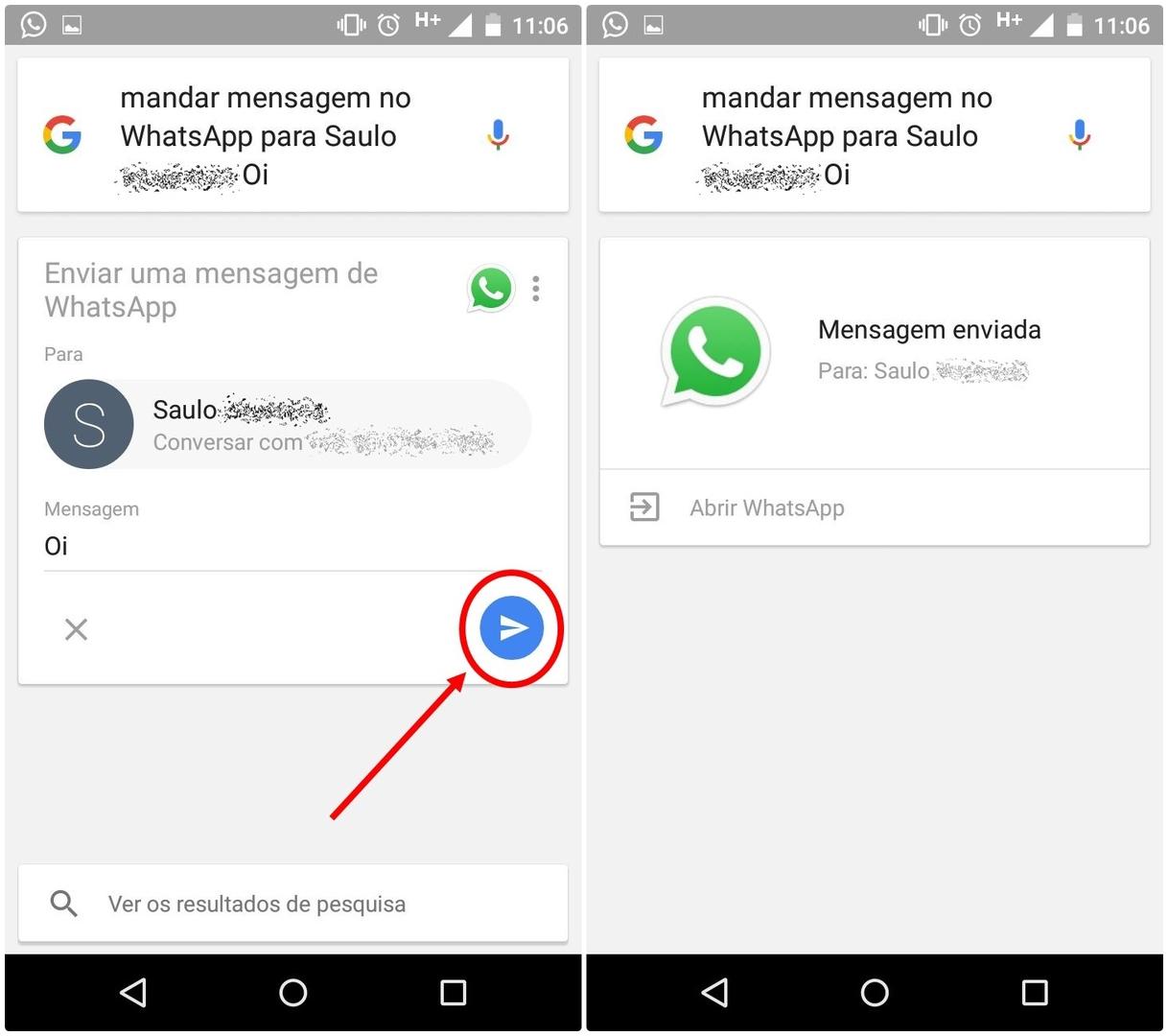 Passo 3. Agora basta você conferir se sua mensagem e seu contato foram reconhecidos corretamente pelo comando de voz. Se tudo estiver de acordo com o que você ditou, basta tocar na seta azul do lado direito abaixo da mensagem, e sua mensagem será enviada!
