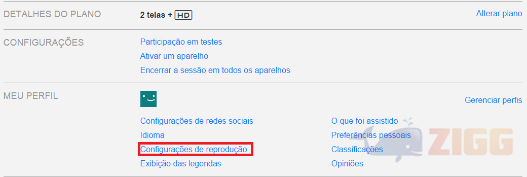 – No menu Minha Conta procure pela opção Configurações de reprodução e clique nela;