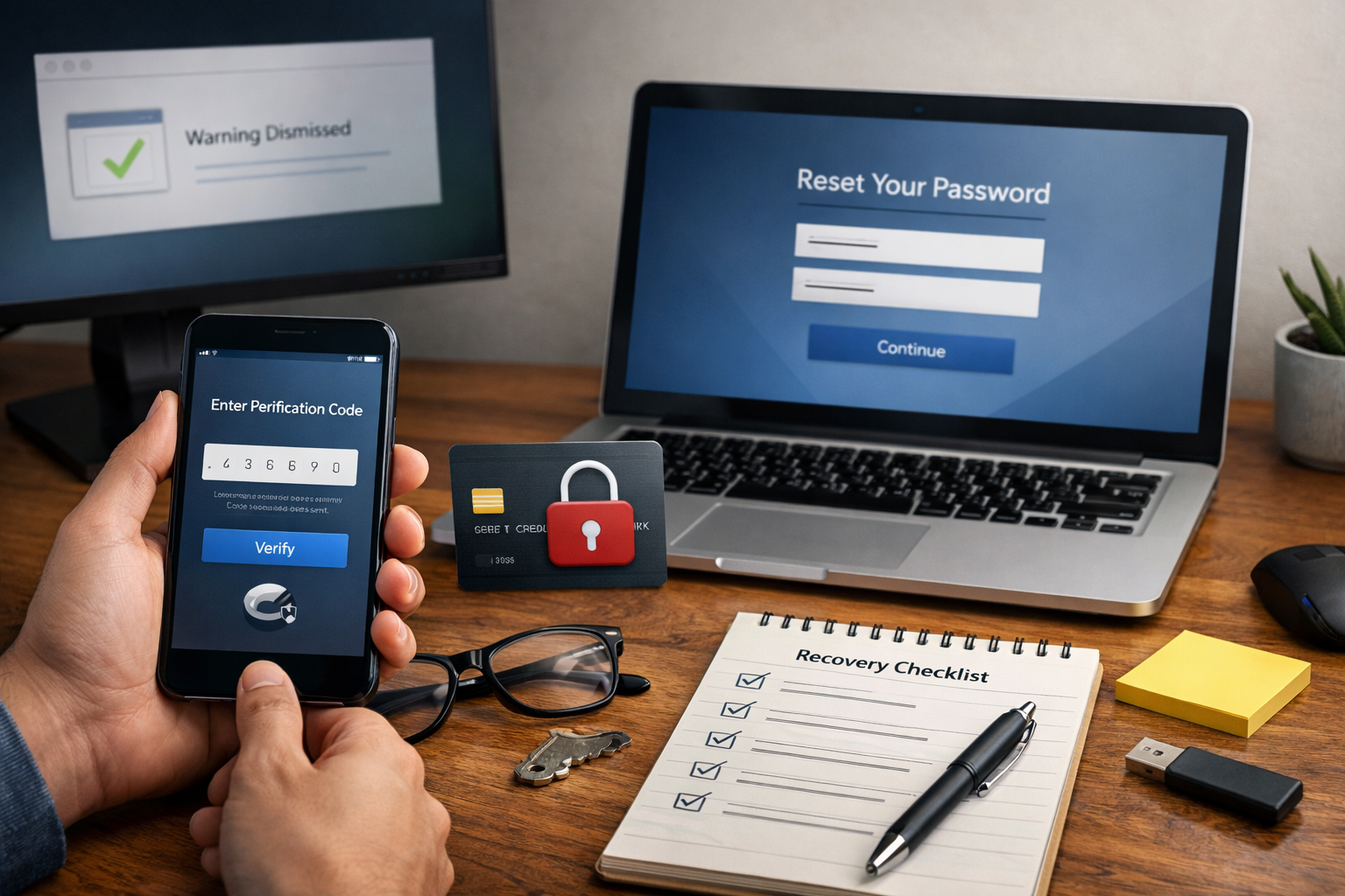 Troque as senhas imediatamente, revise as contas associadas, ative 2FA, monitore seu e-mail e seu banco, bloqueie ou cancele meios de pagamento quando necessário e reúna evidências da fraude.