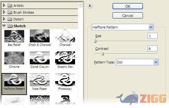 08. Agora vá em Filter> Sketch> Halftone Pattern e defina os valores abaixo.