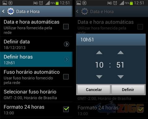 3 – Caso esteja marcada, desmarque a opção ‘Data e Hora automáticas’