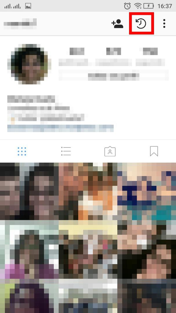 O novo ícone com a nova função pode ser encontrado ao lado do ícone de adicionar pessoas. No local, agora existe um pequeno desenho que lembra um relógio. O novo ícone, na verdade é um novo recurso bem interessante para quem agora guardar fotos. Clicando nesse lugar você vai poder ver todas as fotos que você fez e guardou.